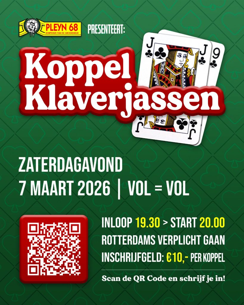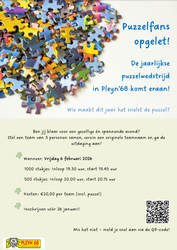 Wil je de nieuwsbrief ontvangen? Meld je aan via pr@pleyn68.nl